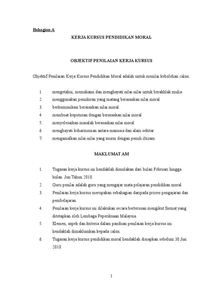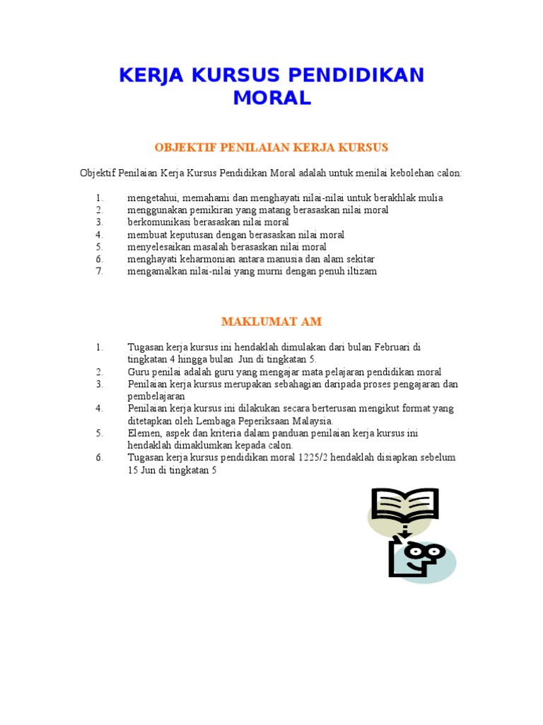 ARAHAN KEPADA CALON Calon SPM yang mengambil mata pelajaran Pendidikan Moral wajib melaksanakan kerja kursus. Up to 24 cash back Penutup. Kajian kes membina buku skrap dan folio membuat demonstrasi simulasi.